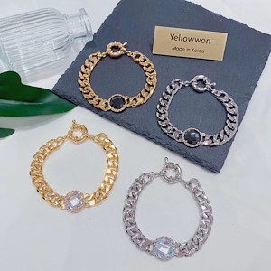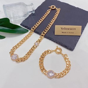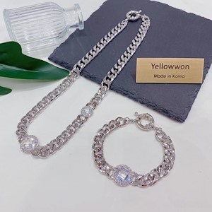 套组 项链 手链 水晶钻 圆形 透明 链条 四个颜色