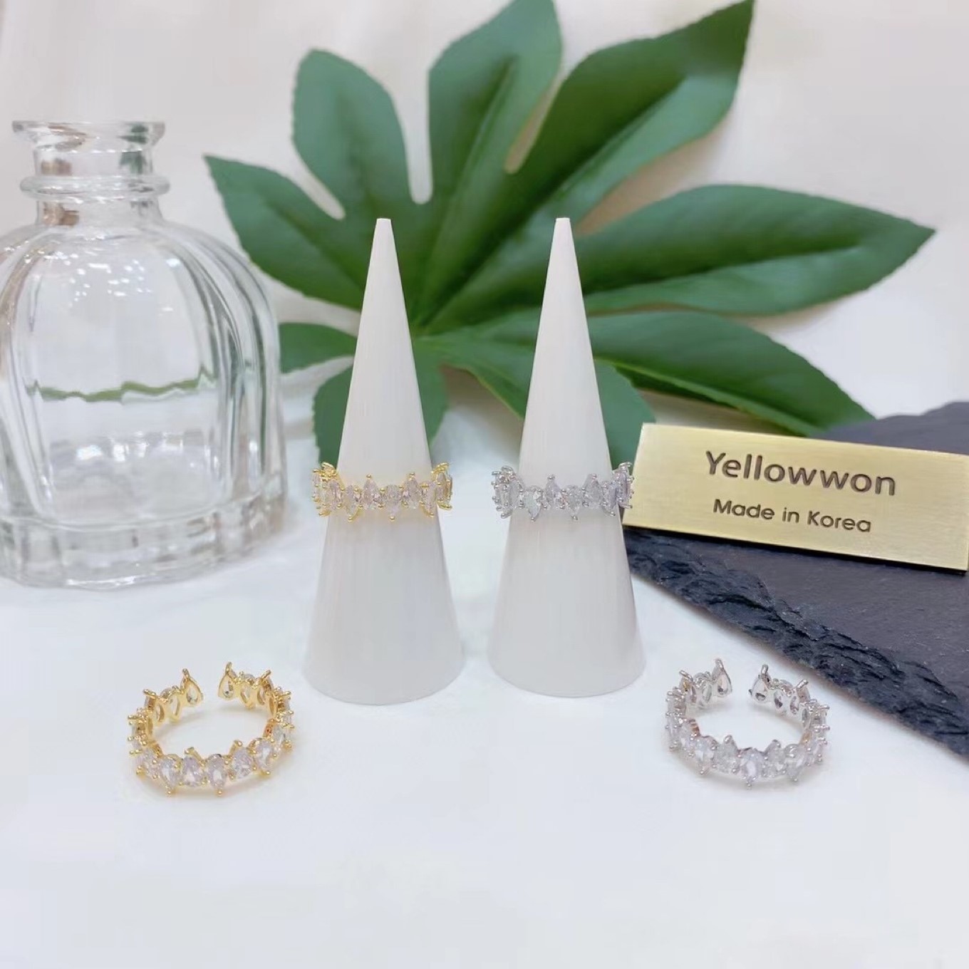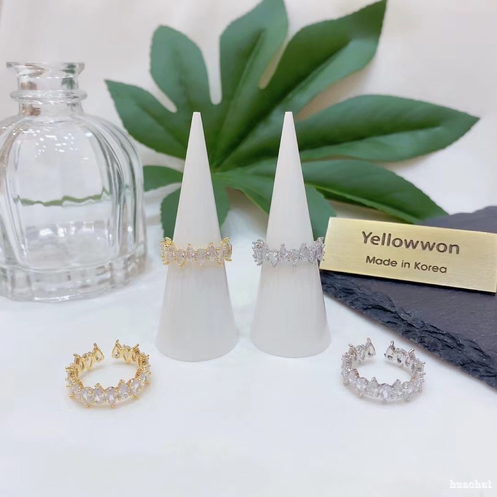 开口戒指 水晶 水滴 透明 两个颜色