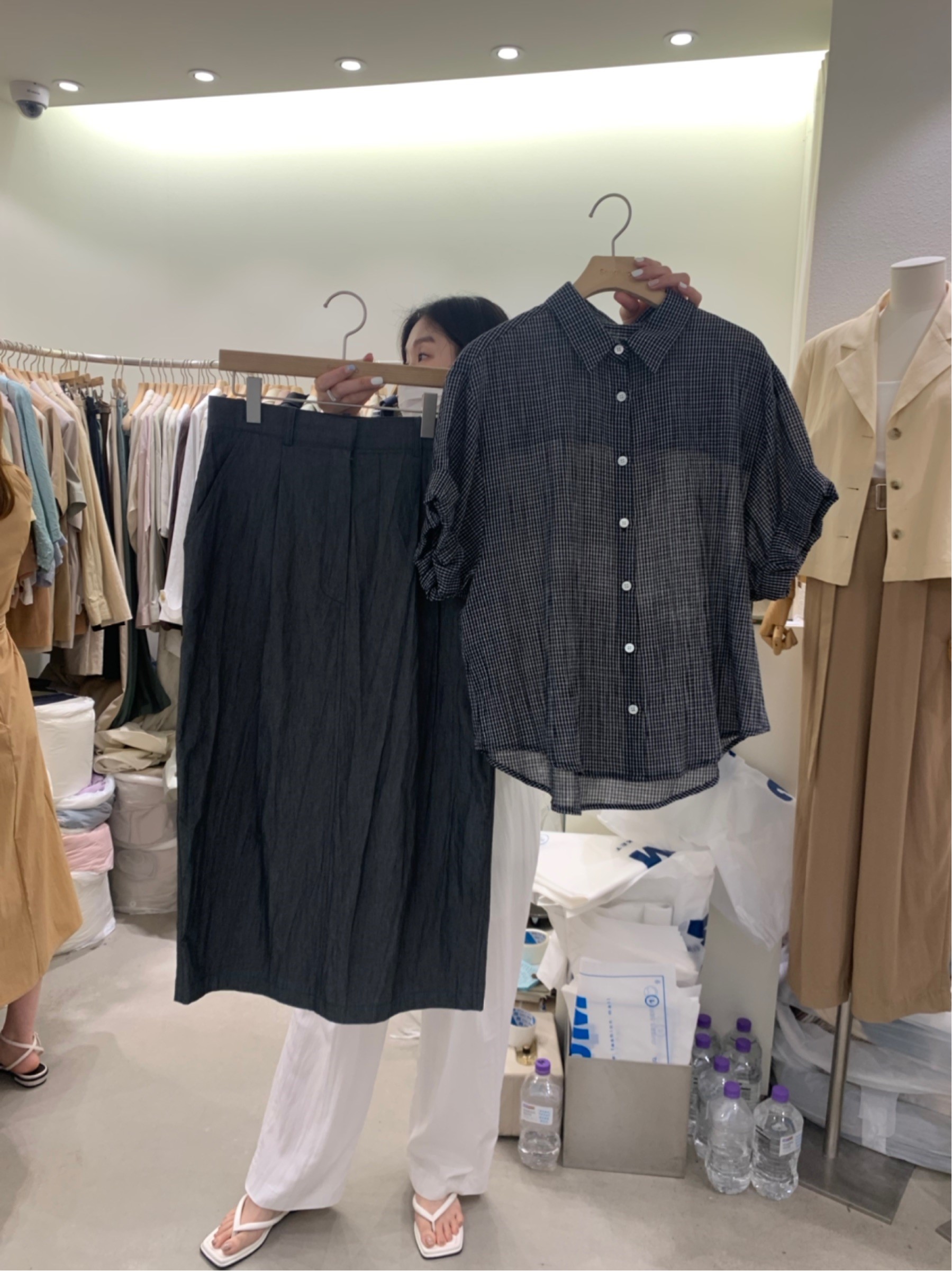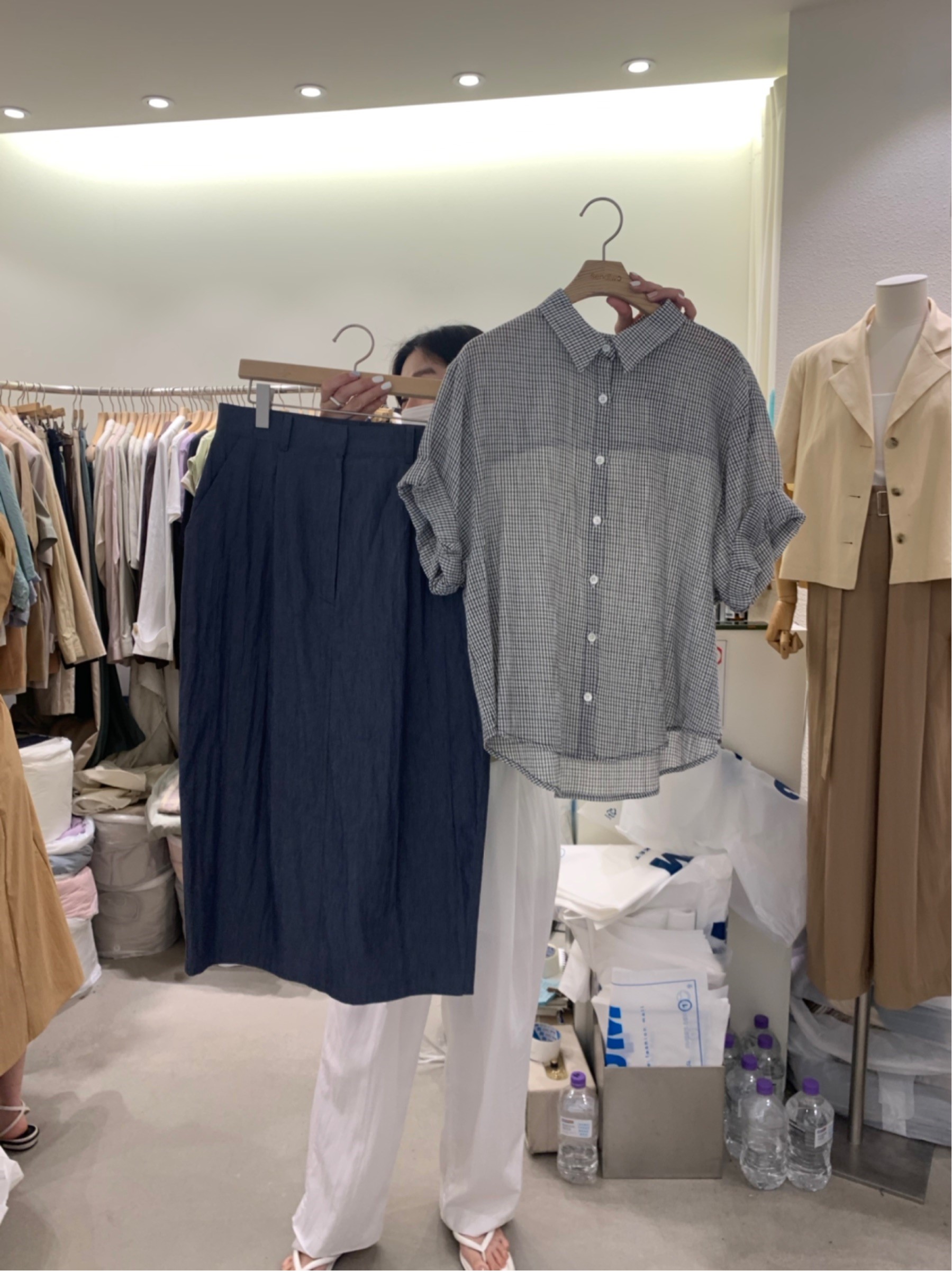 图款 衬衫34000,格子衬衫32000,裙子39000s m