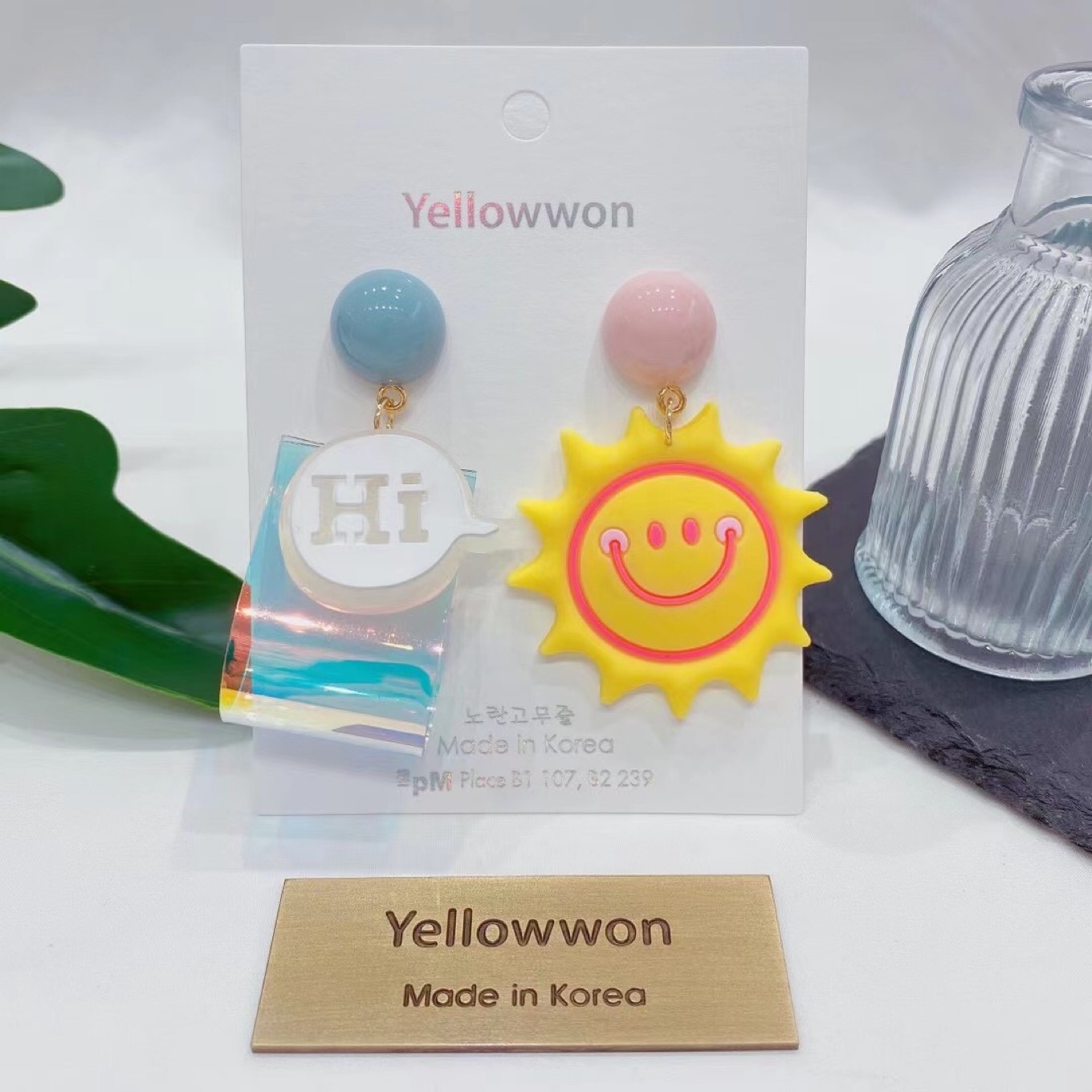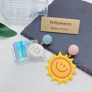 太阳 笑脸 HI 镭射 折叠 亚克力 圆形 糖果色 流苏