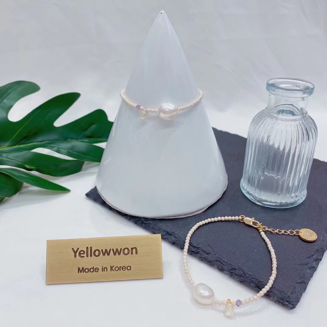 手链 天然淡水珍珠 原石 蛋白石 水晶 透明 金币 圆形 爱心