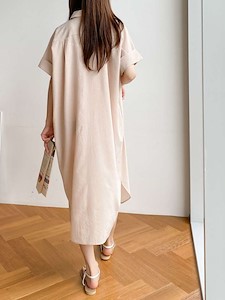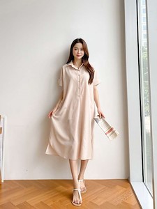 고급스러운 분위기를 연출할수있는 셔츠원피스~ 여름에 시원하게 입을수있는 폴리혼방소재로 럭셔리~ 은은한 스킨색의 연베이지색과 깔끔한 기본템인 아이보리색 그리고 네이비색 3가지로 소매는 카브라로 디테일~ 몸통과 소매의 구분없이 살짝 가오리 스타일