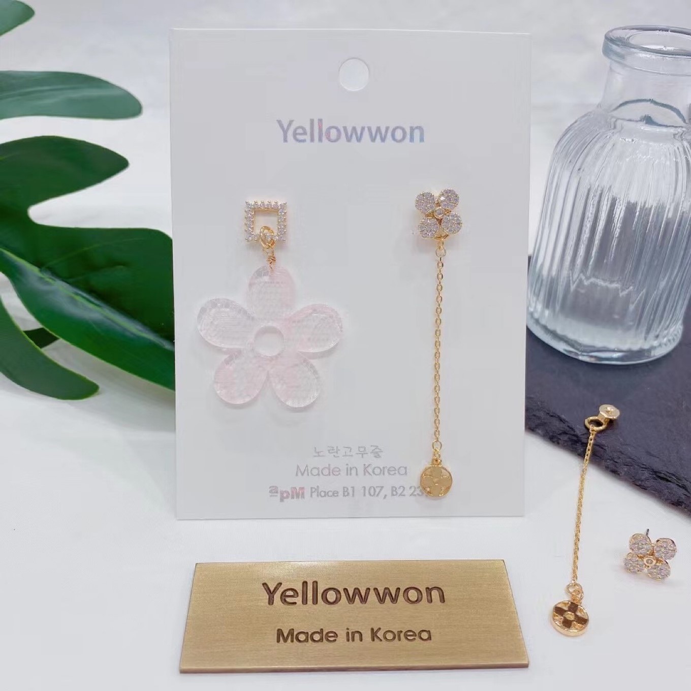 银针 水晶 亚克力 蕾丝 透明 四叶草 花朵 链条 前后款 流苏