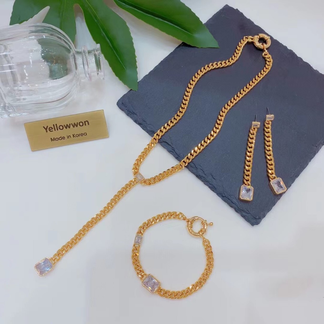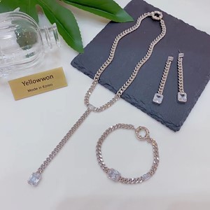 套组 耳环 项链 手链 水晶钻 链条 长方形 两个颜色