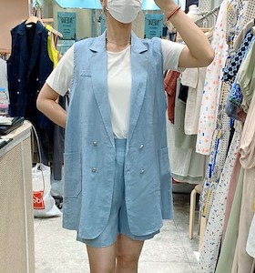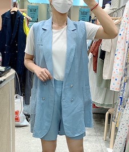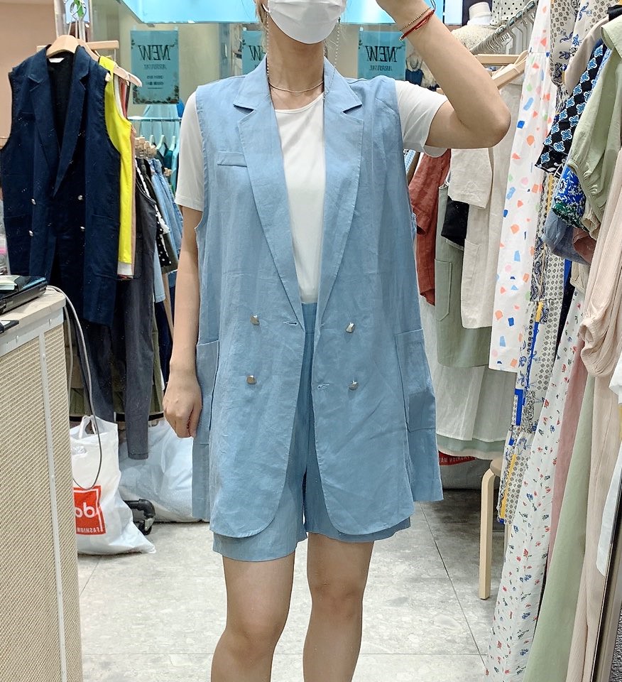 ; 힙을 가리는 기장의 더블조끼로 반바지,원피스