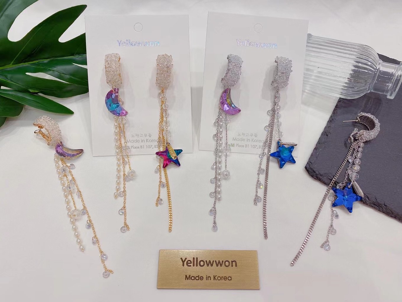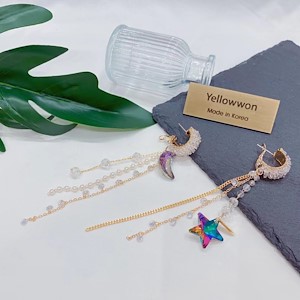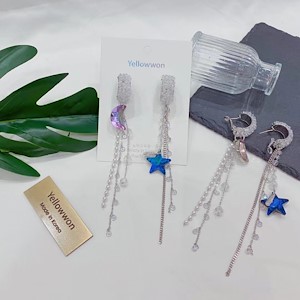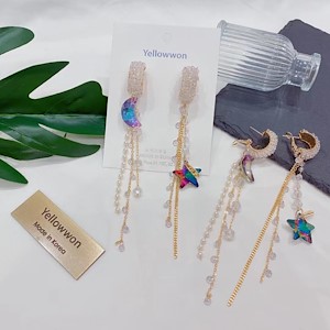 耳圈 银针 施华洛世奇水晶 月亮 星星 链条 珍珠 珠链 流苏 两个颜色
