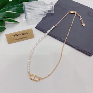 项链 天然淡水珍珠 猪鼻扣 链条 哑光 两个颜色