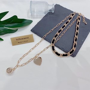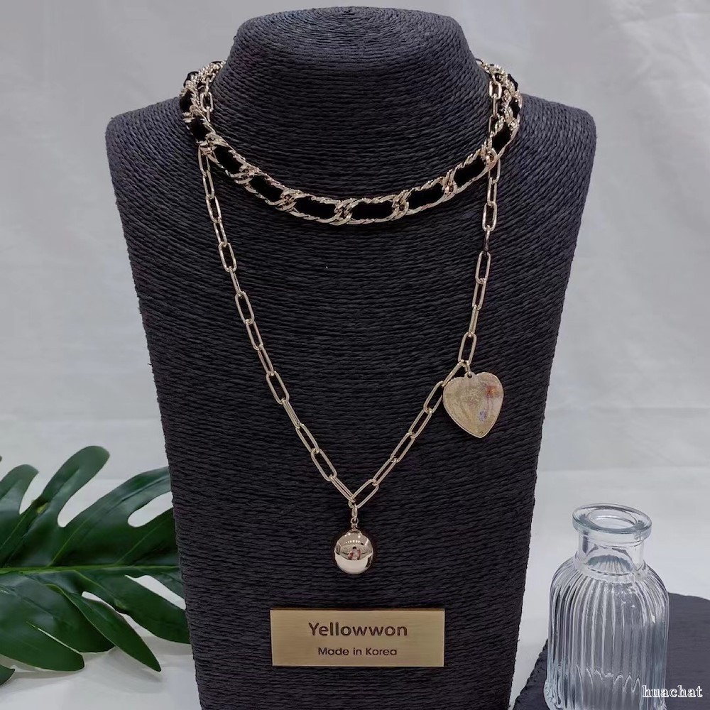 项链 链条 皮质款 麂皮 爱心 金珠 小香风