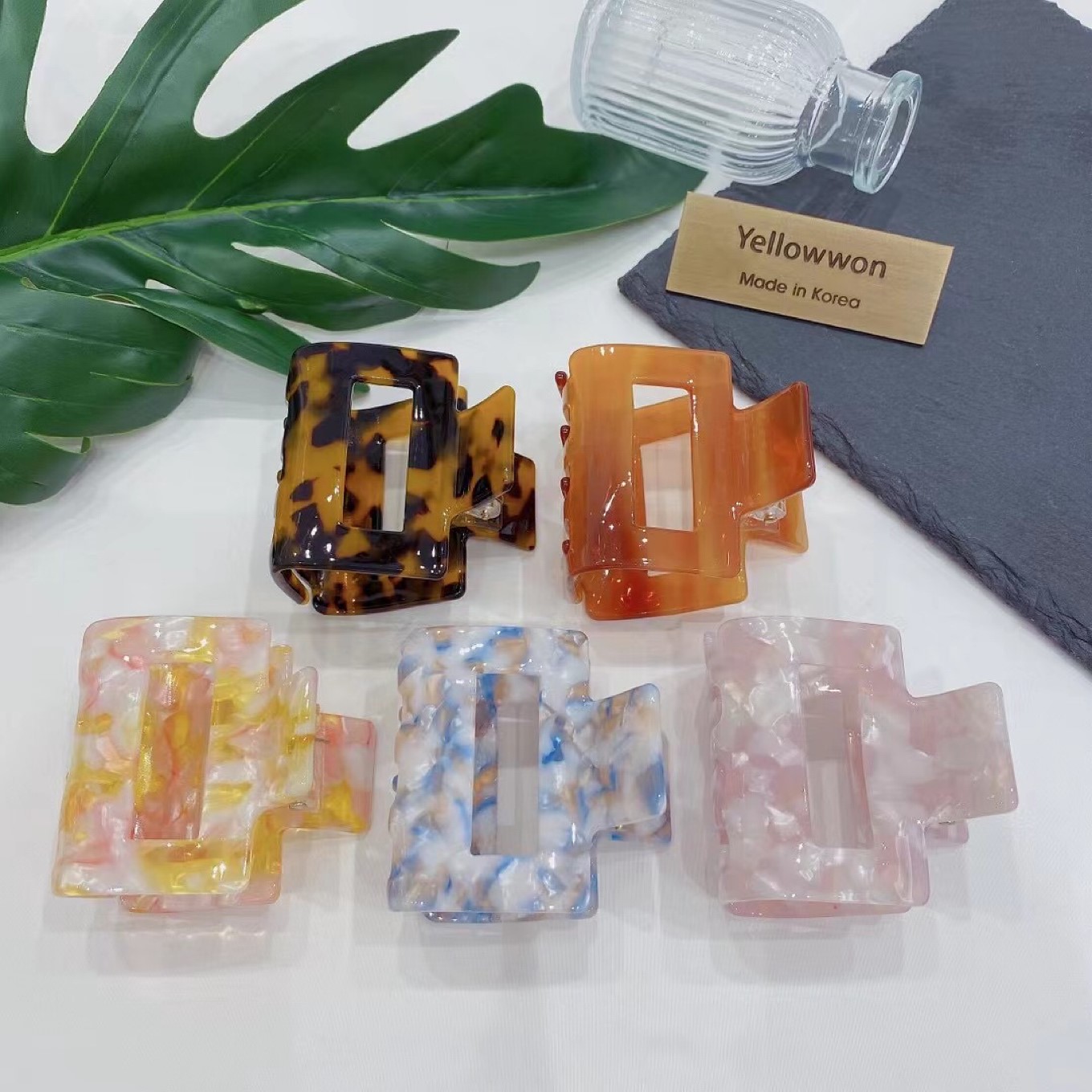 发夹 一个 鲨鱼夹 抓夹 亚克力 琥珀 大理石纹 长方形 五个颜色