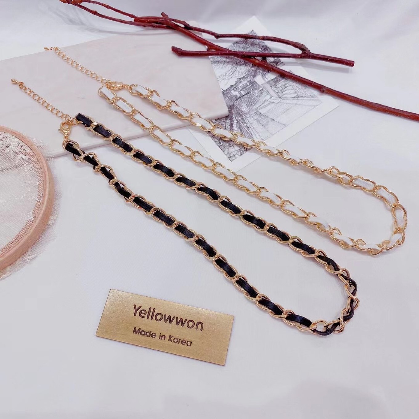项链 颈链 链条 皮质款 小香风 两个颜色