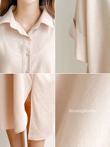 고급스러운 분위기를 연출할수있는 셔츠원피스~ 여름에 시원하게 입을수있는 폴리혼방소재로 럭셔리~ 은은한 스킨색의 연베이지색과 깔끔한 기본템인 아이보리색 그리고 네이비색 3가지로 소매는 카브라로 디테일~ 몸통과 소매의 구분없이 살짝 가오리 스타일