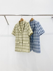 𝘋𝘳𝘦𝘴𝘴 𝘳𝘰𝘰𝘮 - 2021 ss 올리브 체크 반팔 자켓