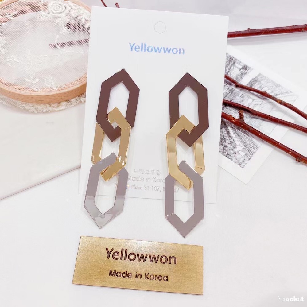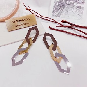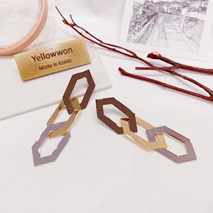 육각체인 귀걸이 다홍색상