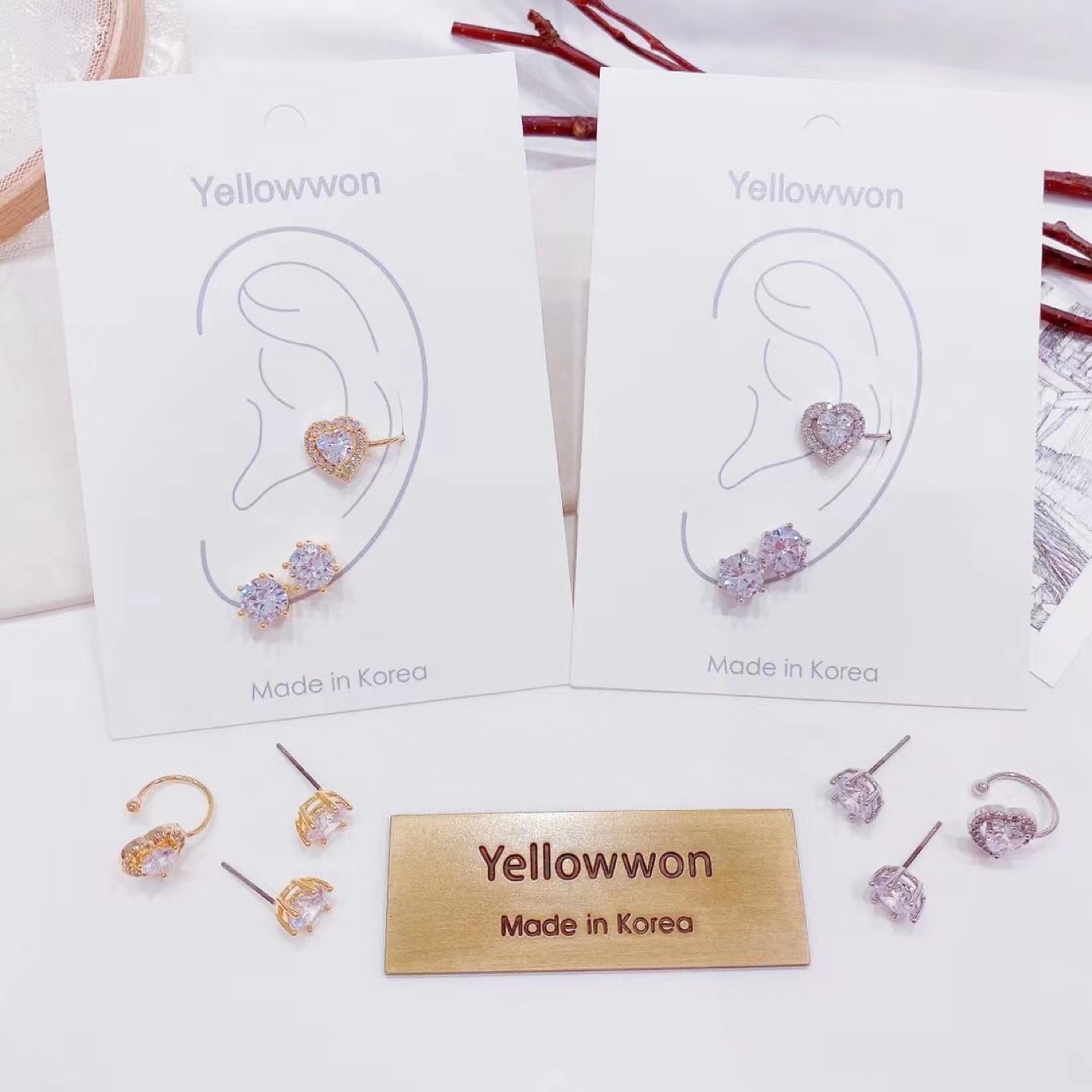 耳针 耳骨夹 三个一组 水晶 爱心 两个颜色