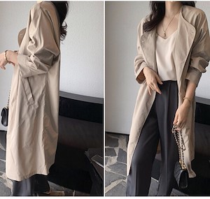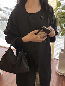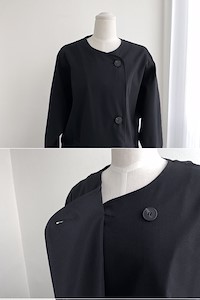 클래식하고 모던한 무드의 자켓으로 깔끔한 실루엣을 연출하며 가오리핏의~ 일자로 떨어지는 와이드한 롱~기장으로 카라라인이 따로 없는 라운드넥으로 버튼으로 클로징시에도 깔끔한 사파리 ~^^