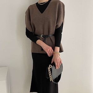 브이 가오리 니트 벨트조끼 set