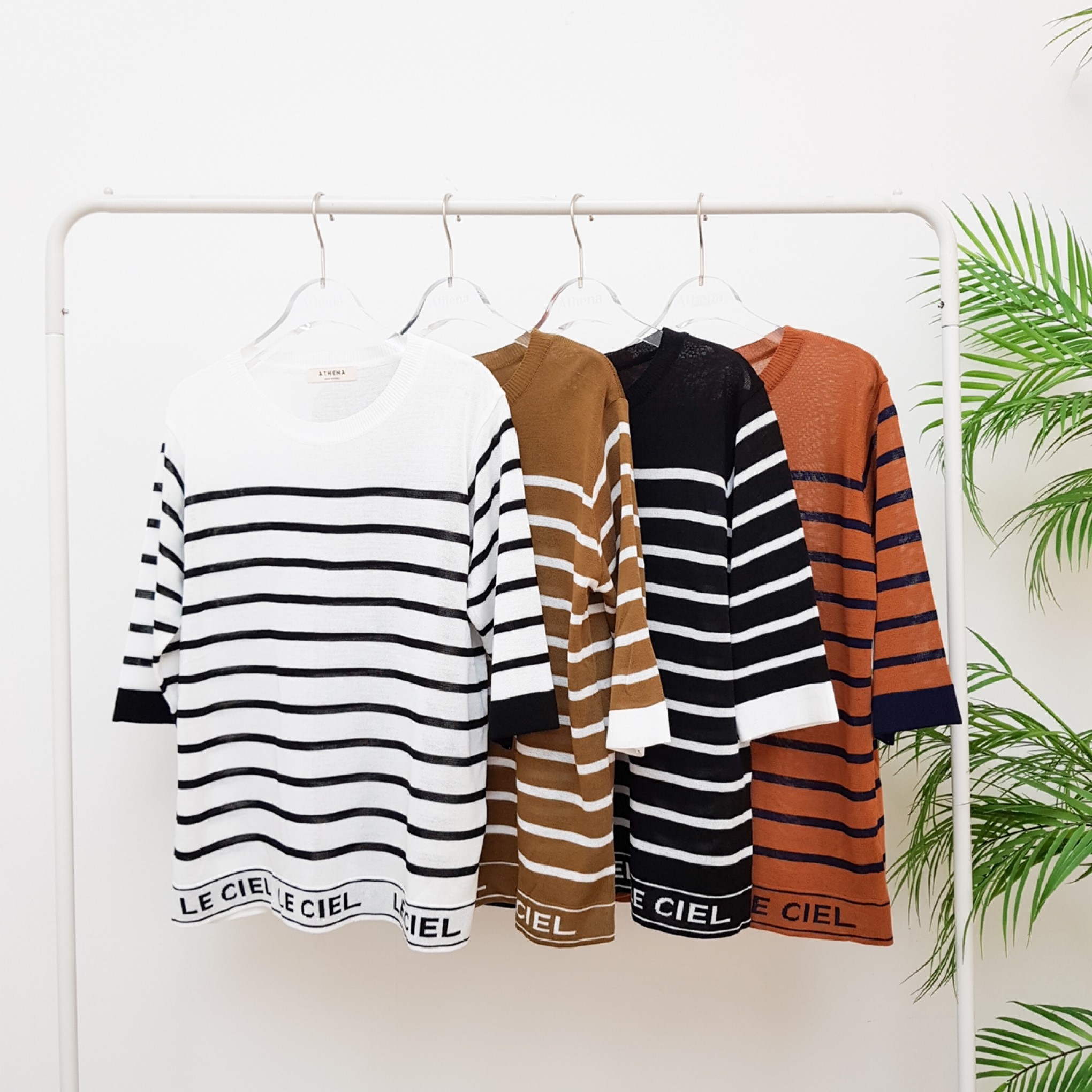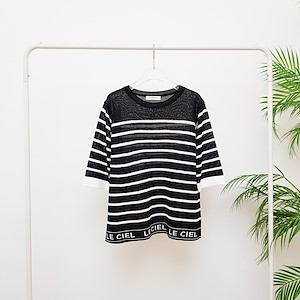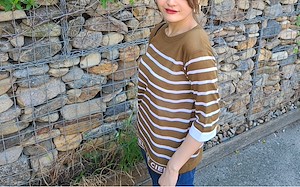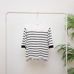 韩国东大门初秋条纹字母针织衫