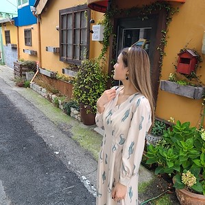 韩国东大门ins风印花连衣裙
