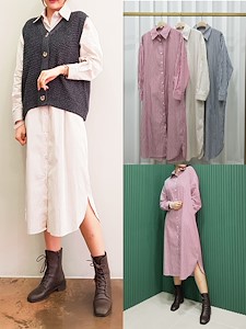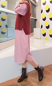 韩国东大门新款条纹衬衣裙