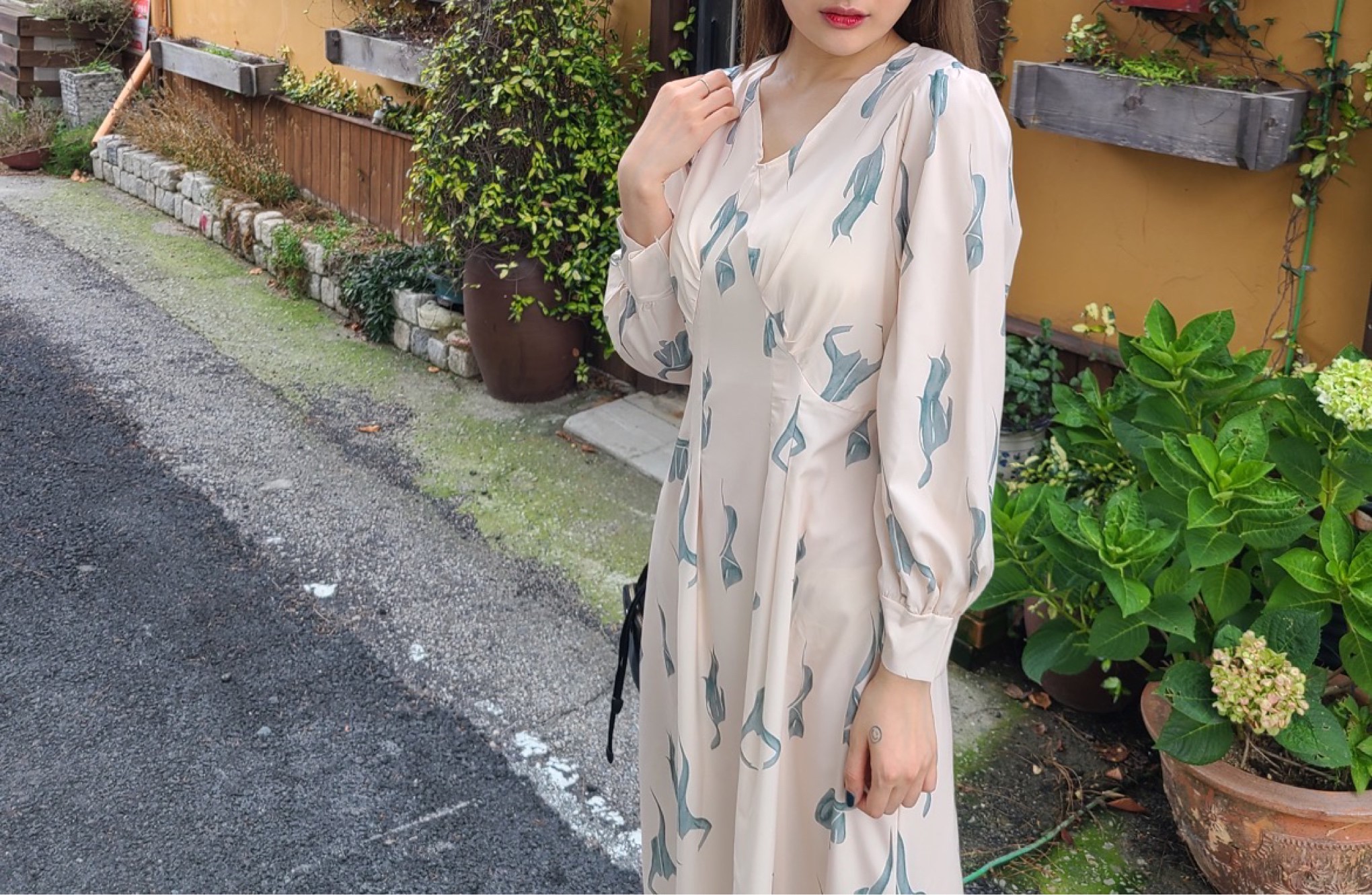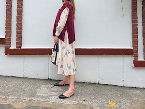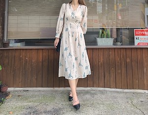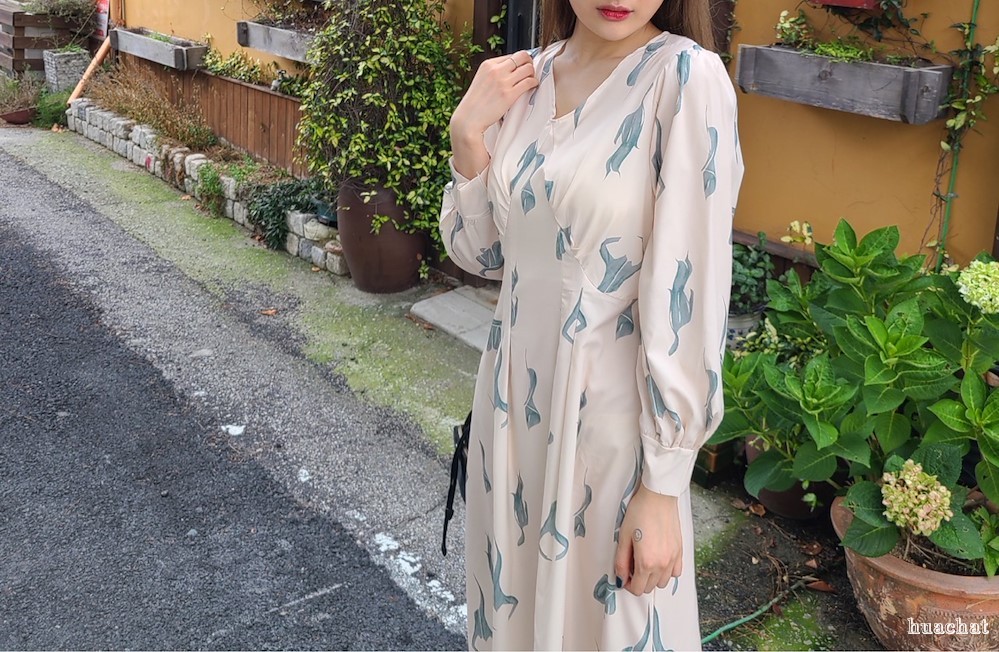 韩国东大门秋季收腰印花裙
