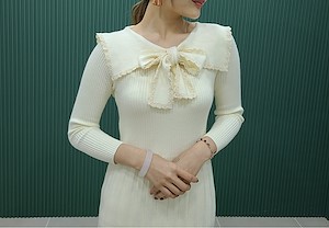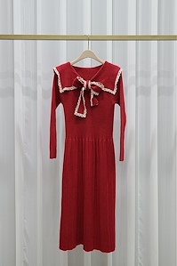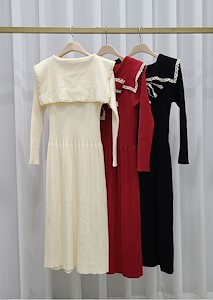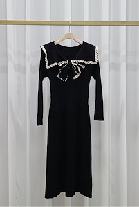 韩国东大门毛呢蕾丝连衣裙