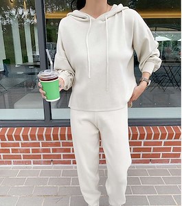 벌룬 소매 후드 니트 투피스 set1