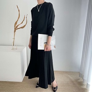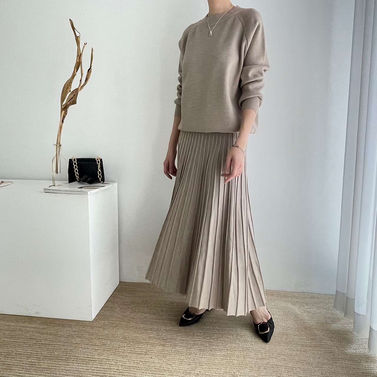 라운드 니트 플리츠 스커트 set