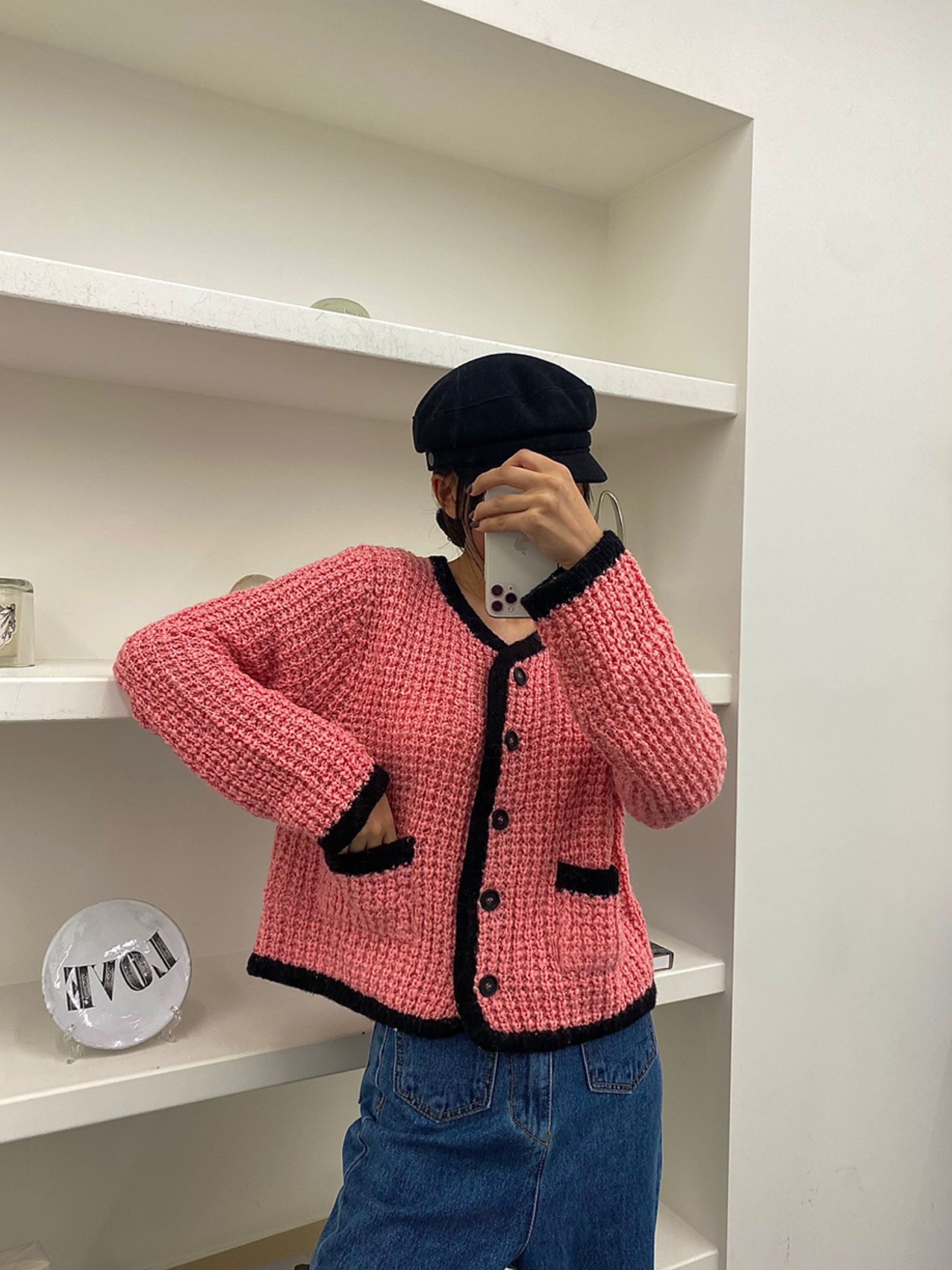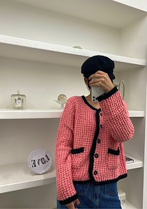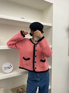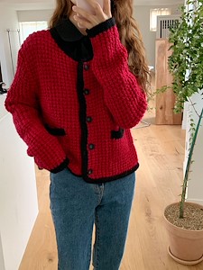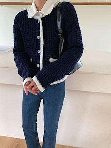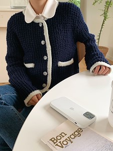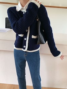 배색니트가디건