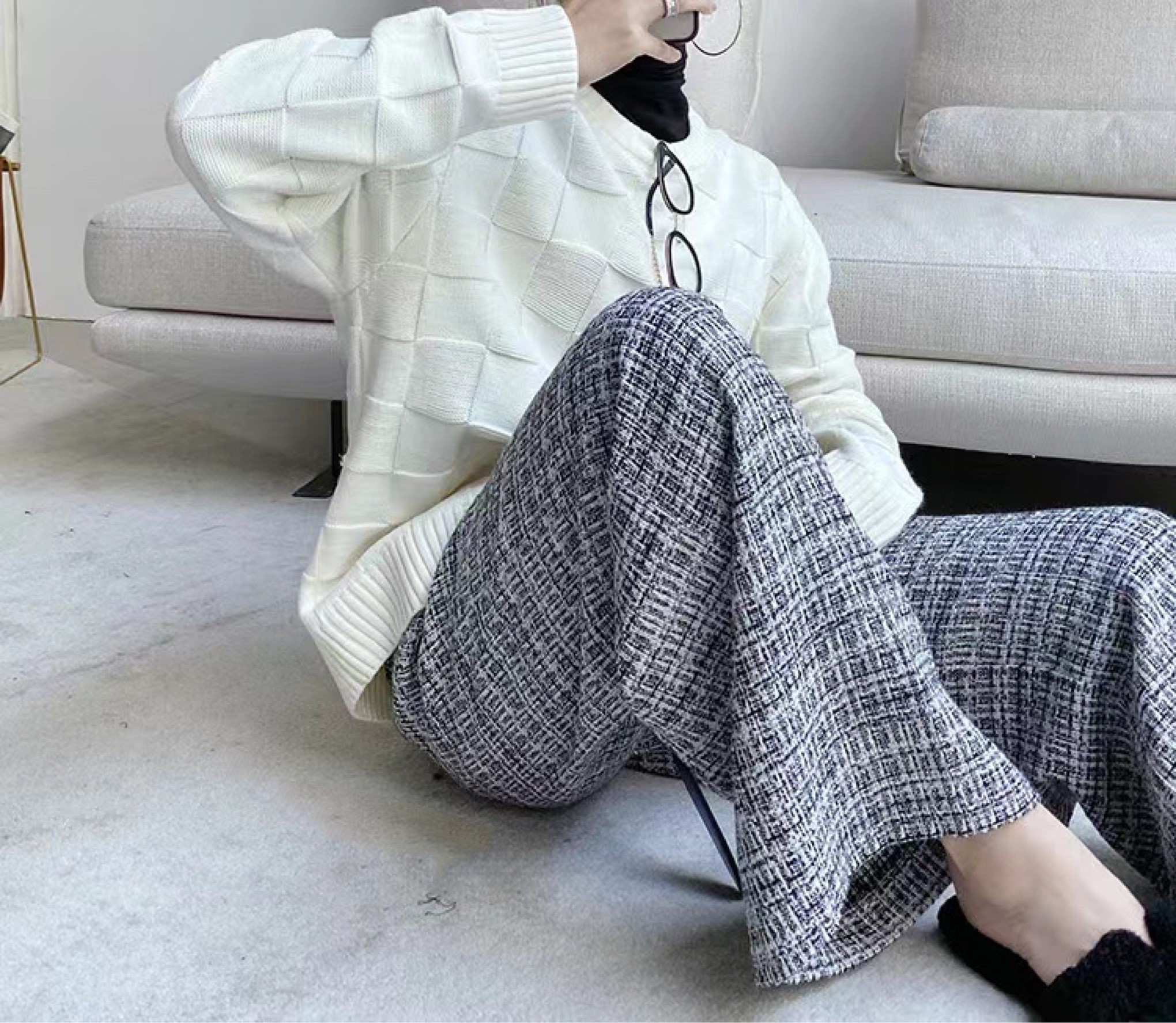 格子针织纹毛衣