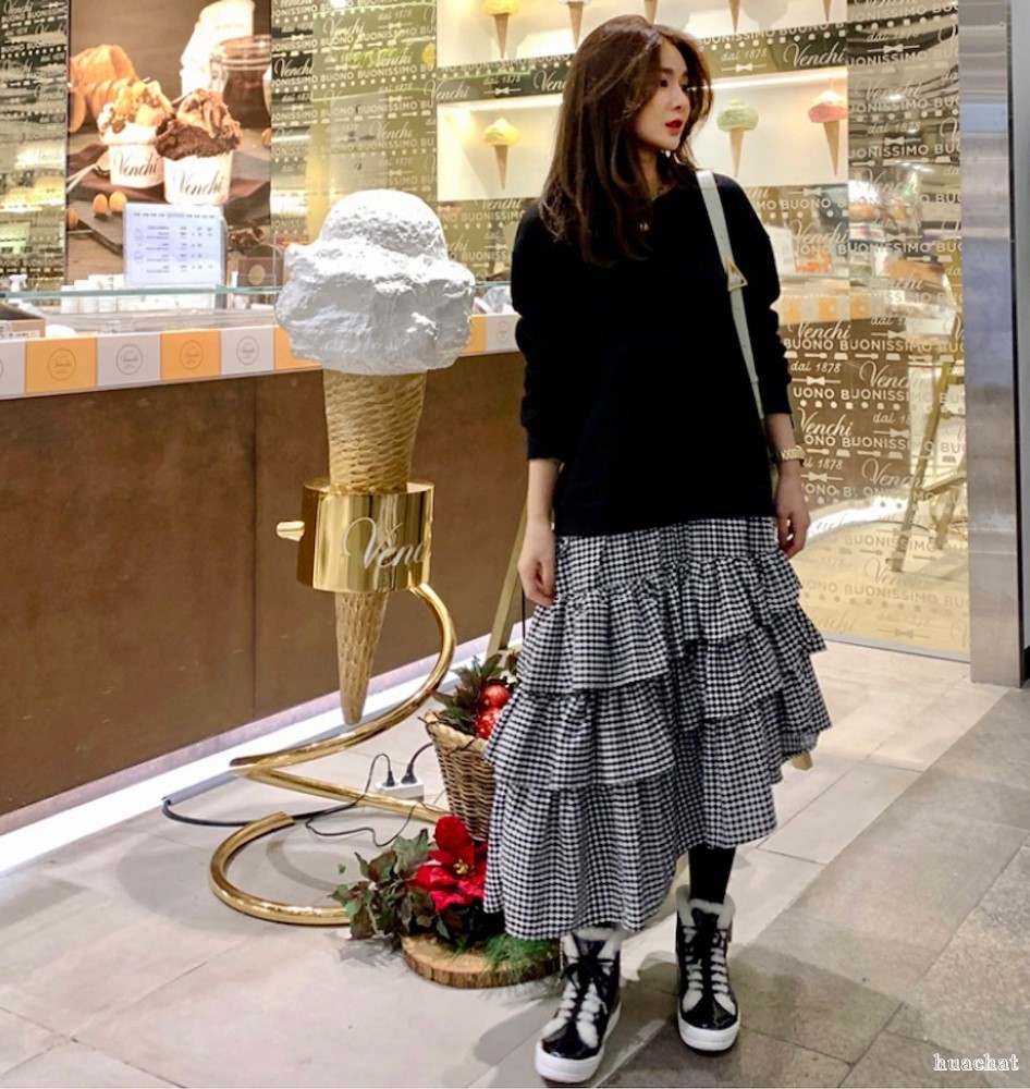 新款格子拼接连衣裙