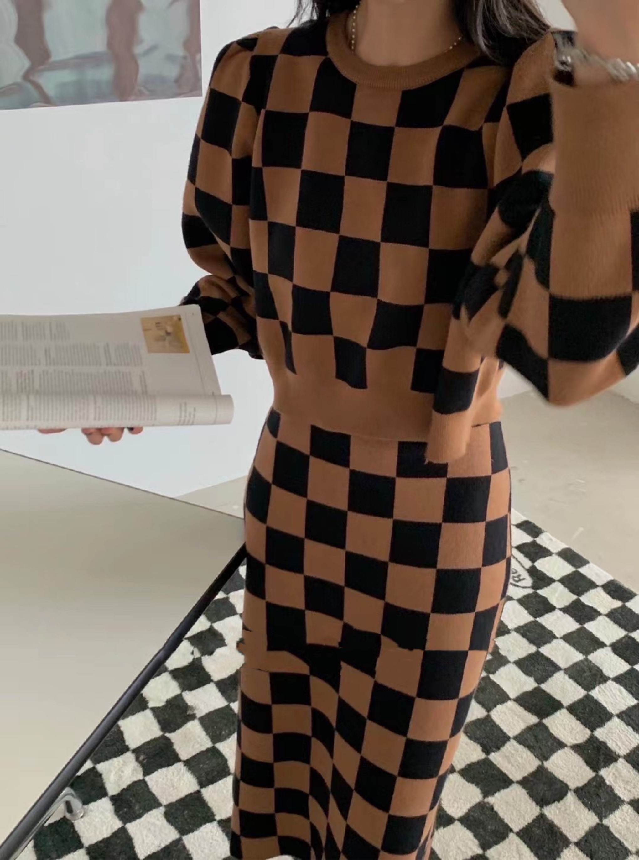 格子针织套装1