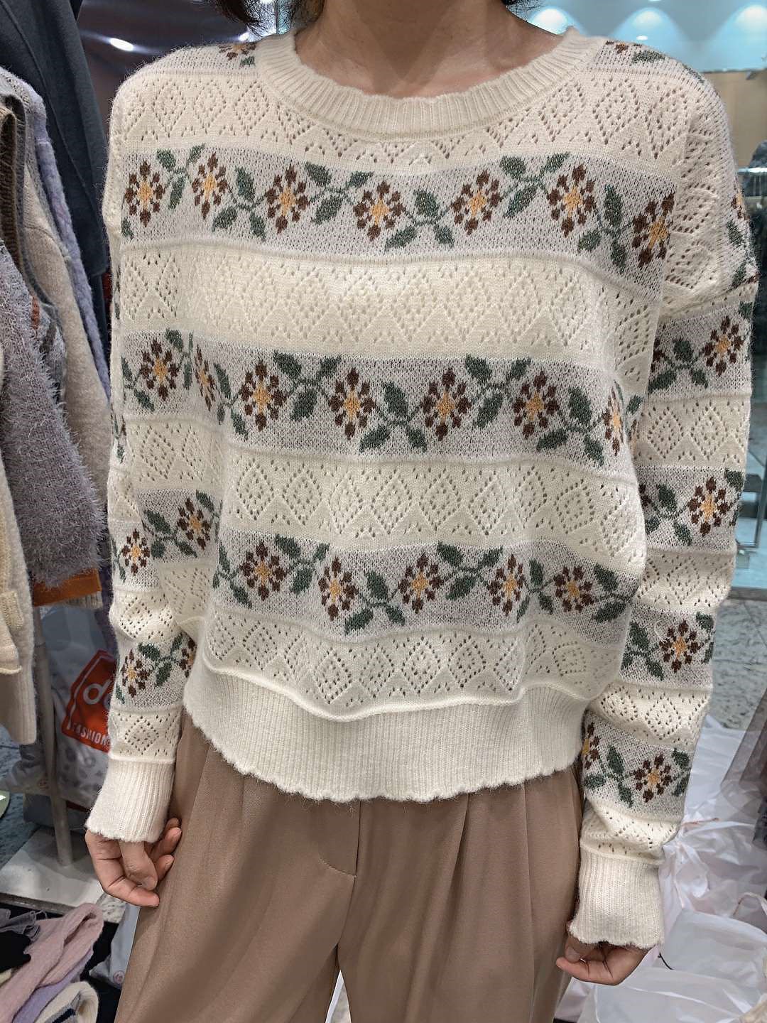 품명 ; 줄꽃니트T