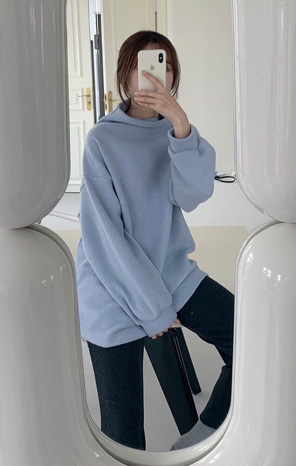 보들보들 부드러운 기모를 살린 솜털처럼 가벼운 하이넥 반목 니트로 간편하게 겨울 코디로 어디에도