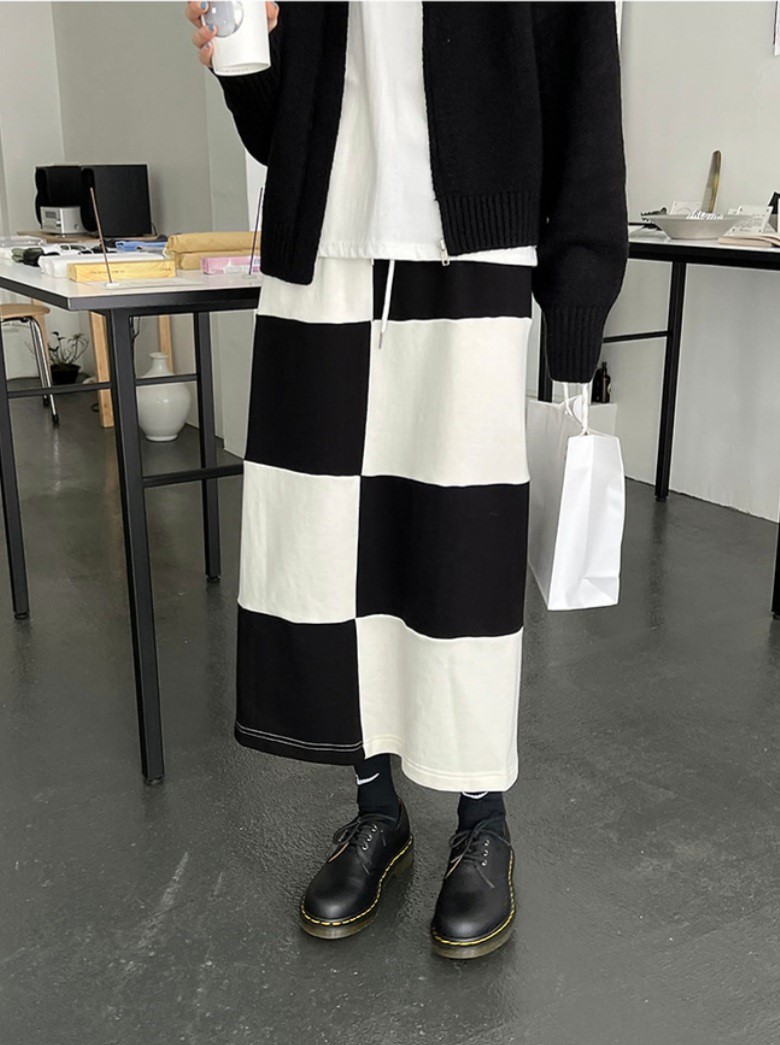 배색 체크 스커트1
