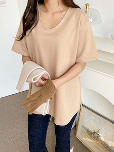 (샌드반팔티)겨울 속기모 트임 u넥 반팔 티셔츠 홈웨어 잠옷1