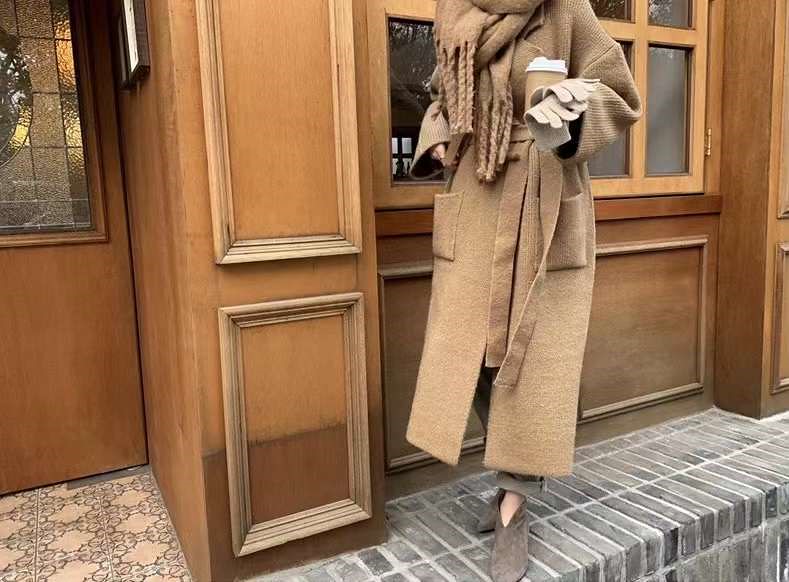 니트벨트롱가디건