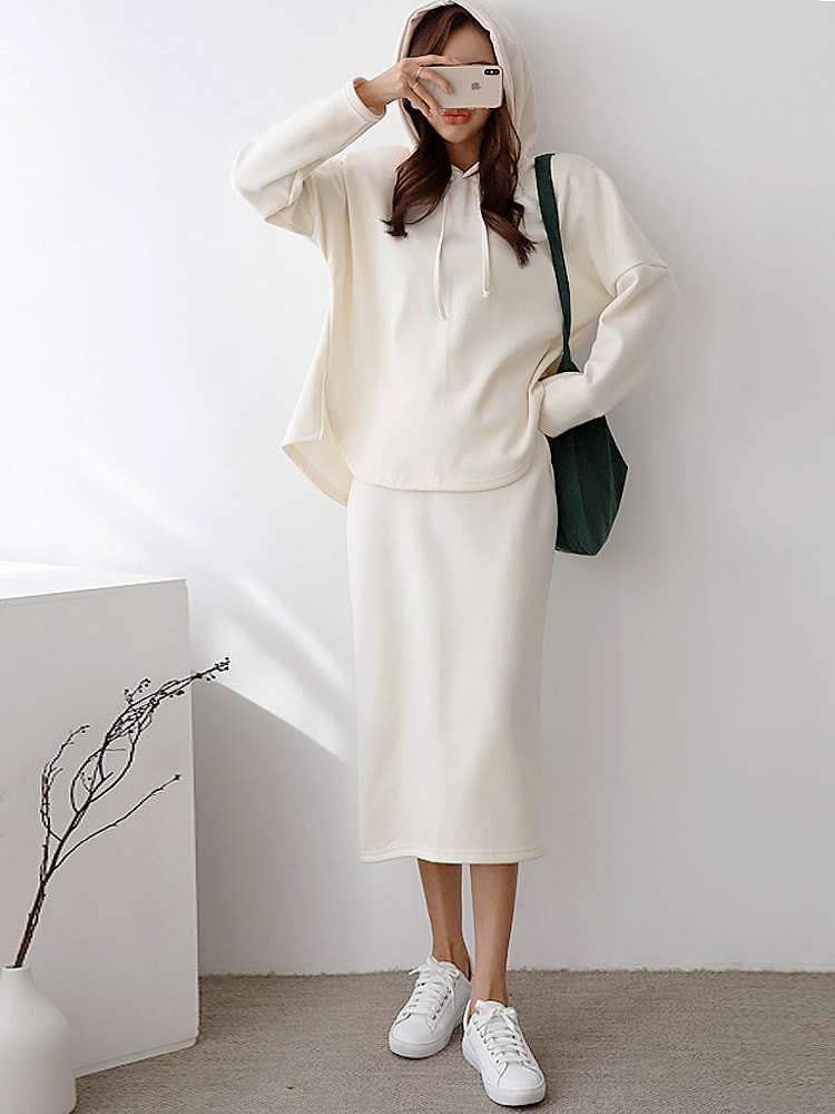 (기모후드치마세트)겨울 신상 후드 치마 트레이닝 세트 set 홈웨어 잠옷1