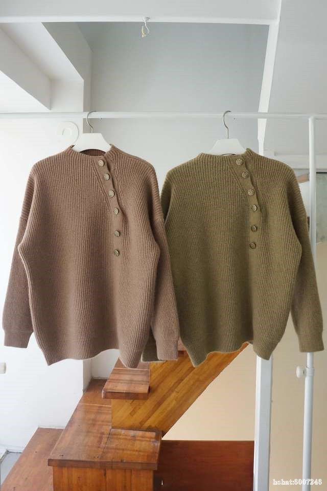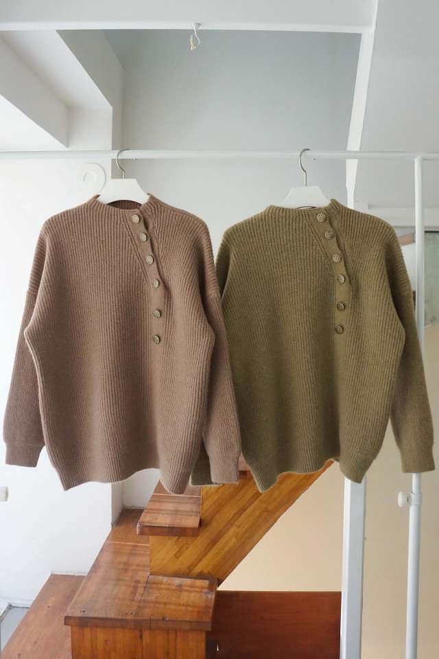 사선버튼니트T