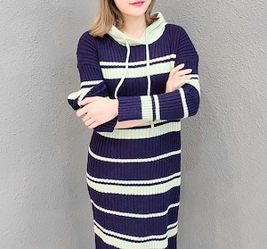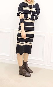 条纹针织连衣裙1