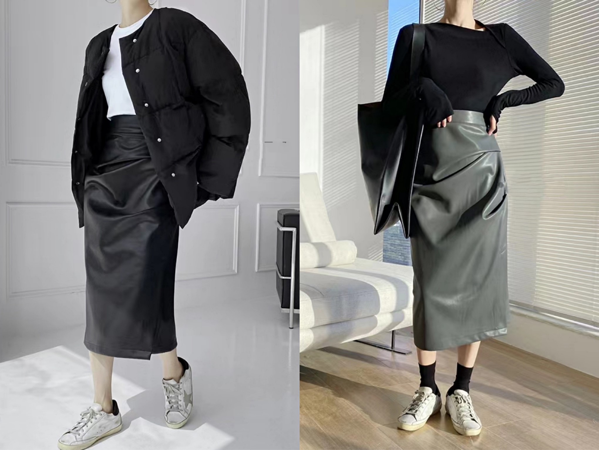 신상 기모 고품질pu 주름롱스커트