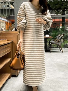 (ST양브이원피스)브이넥 오버핏 맨투맨 원피스 홈웨어 잠옷 패딩 세일1