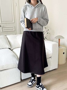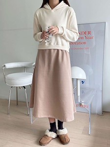 맨투맨후드와 치마 사이에 밴딩을 부착해 착용시 슬림한 느낌으로 코디가능해요