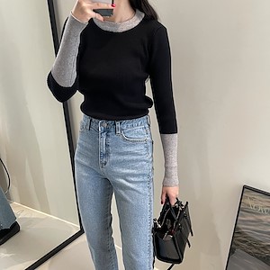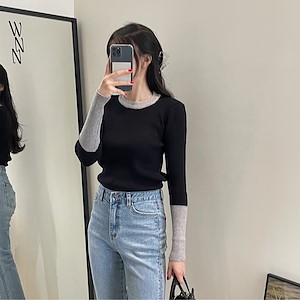 배색골R니트T1