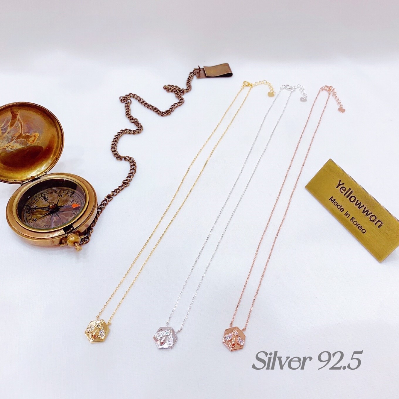 项链 16000 通体 925银 明星同款 宋慧乔同款 尚美同款 蜜蜂 六边形 水晶 三个颜色