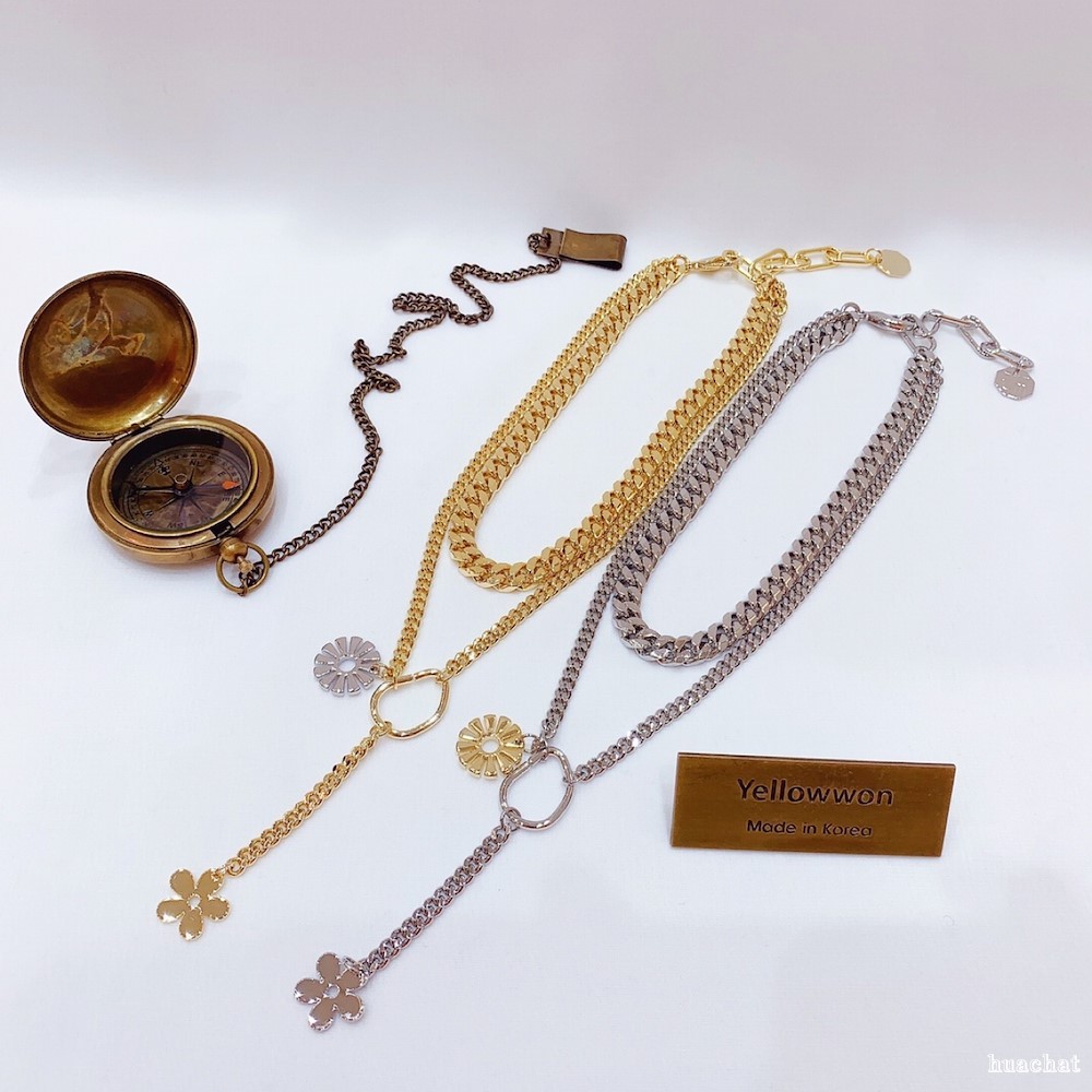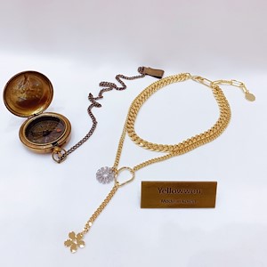 项链18000 链条 坦克链Y字母花 几何图形 撞色 两个颜色