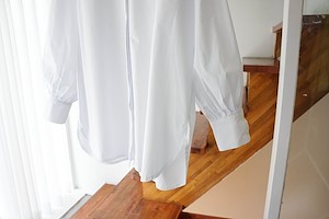 ; 깔끔한 셔츠로 소매 볼륨감을 주어