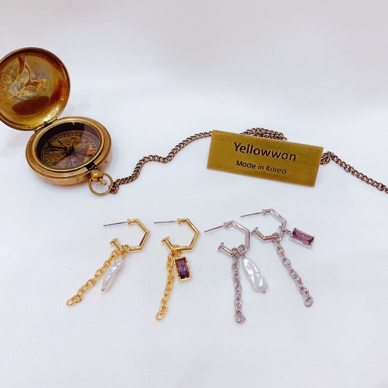 耳圈💰12000 施华洛世奇水晶 天然淡水珍珠 链条⛓️ 多边形 长方形 方形 两个颜色