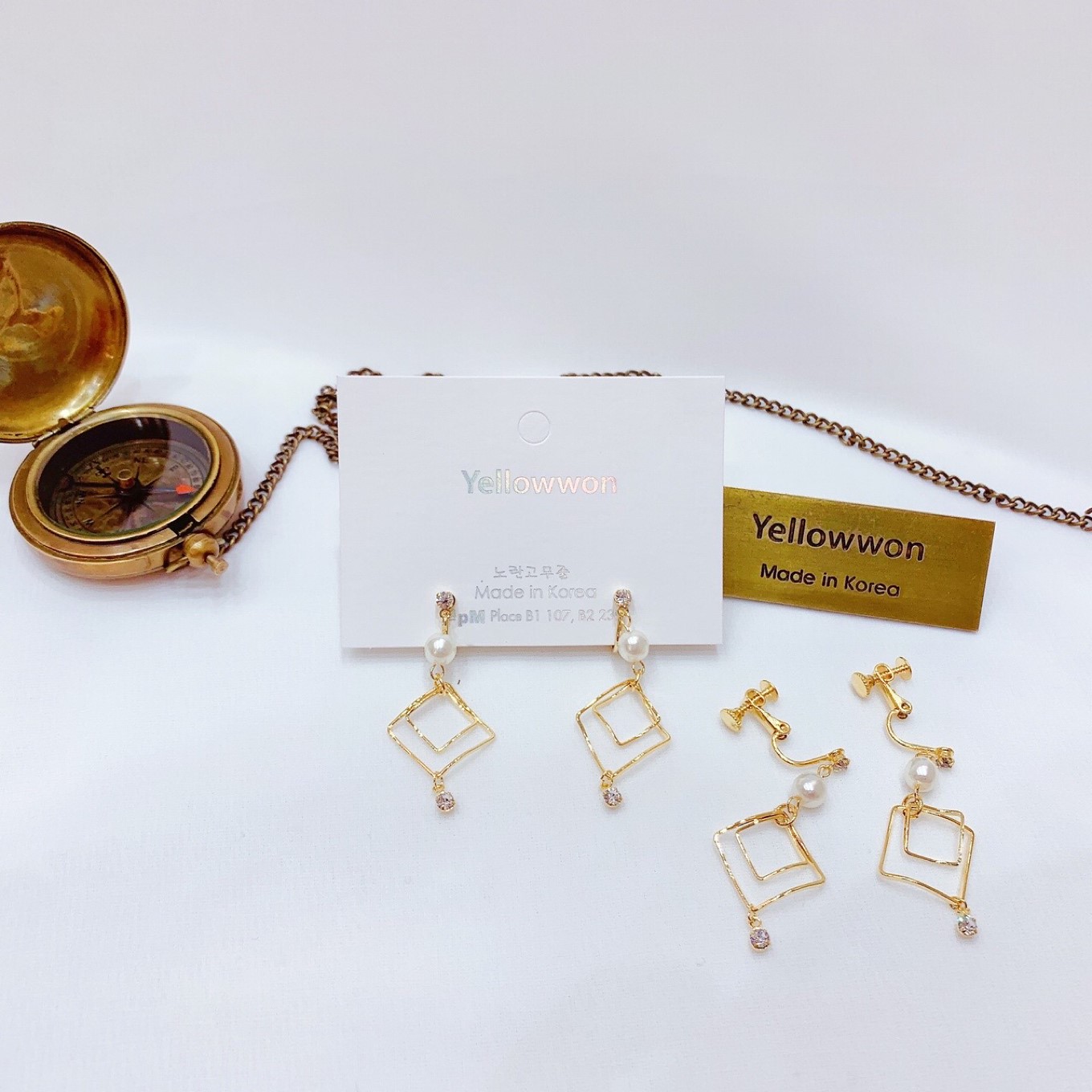耳夹💰5000 珍珠 菱形 方形 水晶 流苏