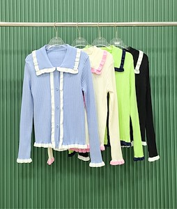 배색골지가디건