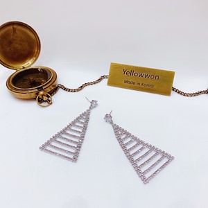 💰9000 银针 三角形 镂空 格纹 水晶 流苏 两个颜色